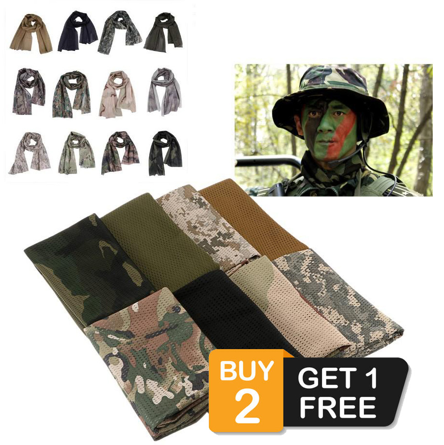 Camouflage Head Covering Mesh Material Hunting Shemagh Scarf MANY COLORS
